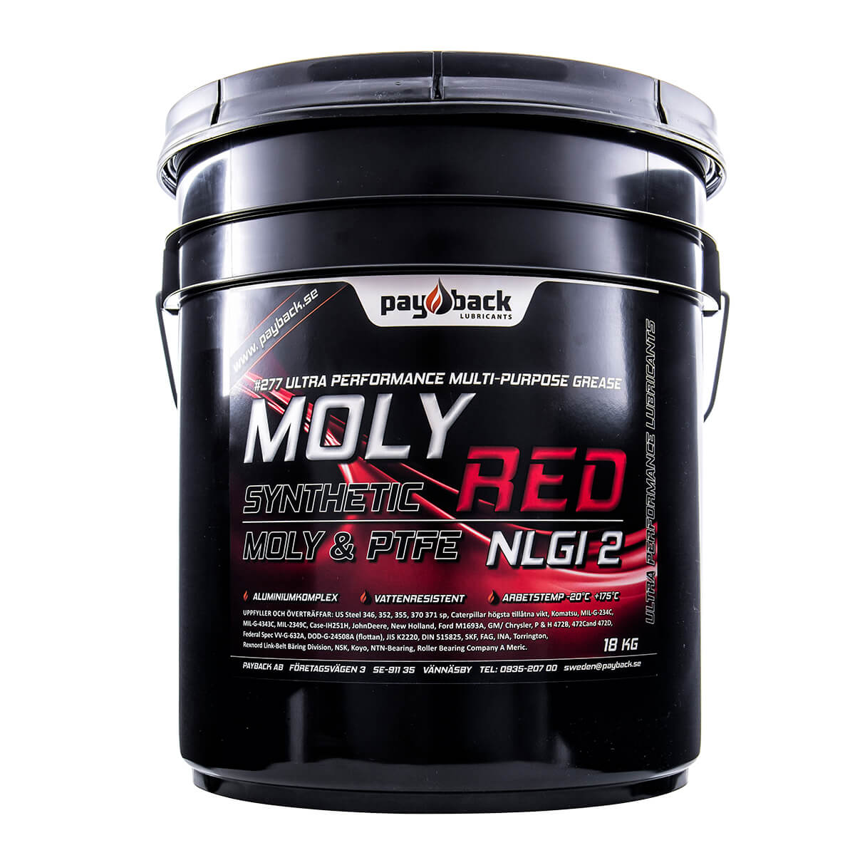 #277 MOLY RED er en syntetisk “Super High Performance” fedt med meget høj vedhæftning, forskydningsstabilitet og ekstrem trykmodstand. Til applikationer med krav til lavudpresning, høj tæthed, slitagebeskyttelse, vandresistens og ekstremfunktionalitet.