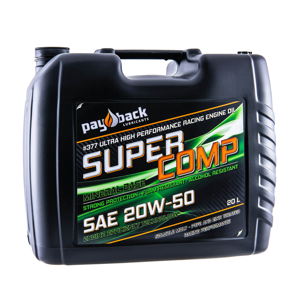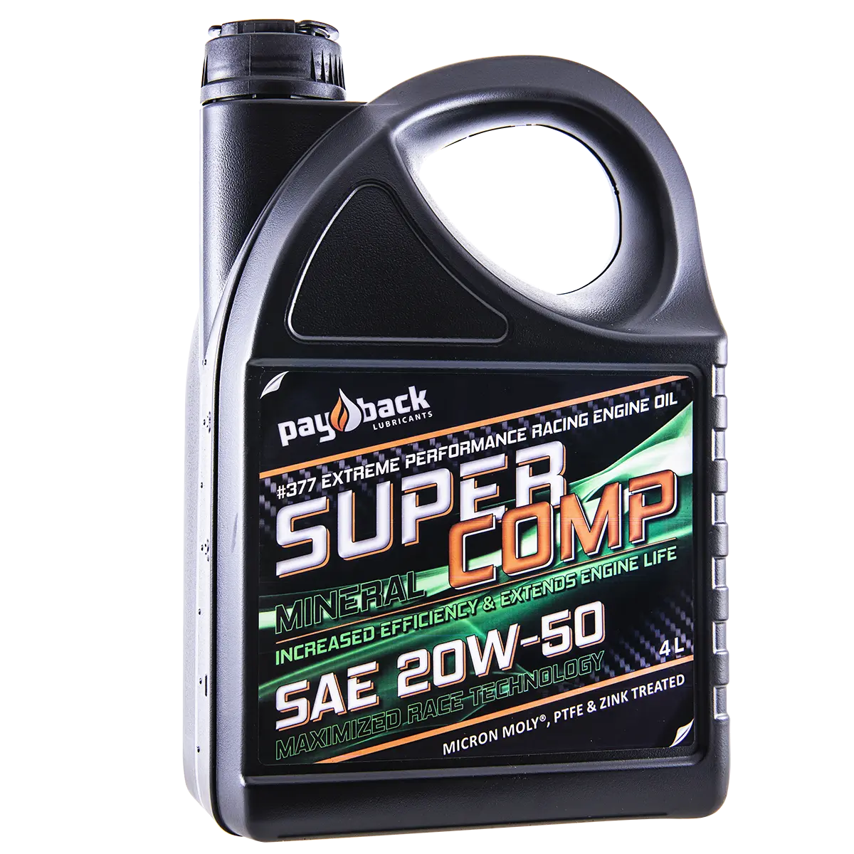 377 SUPER COMP är en extrem motorolja för gatbruk och proffisionellt tävlingsbruk. Den exklusiva, metallbehandlande additivtekniken med Penetro®, Micron Moly® och Zink ger ultralåg friktion. En motorolja som håller motorer i nyskick under extrema driftförhållanden. För bensin-, etanol-, metanol- och nitromotorer.